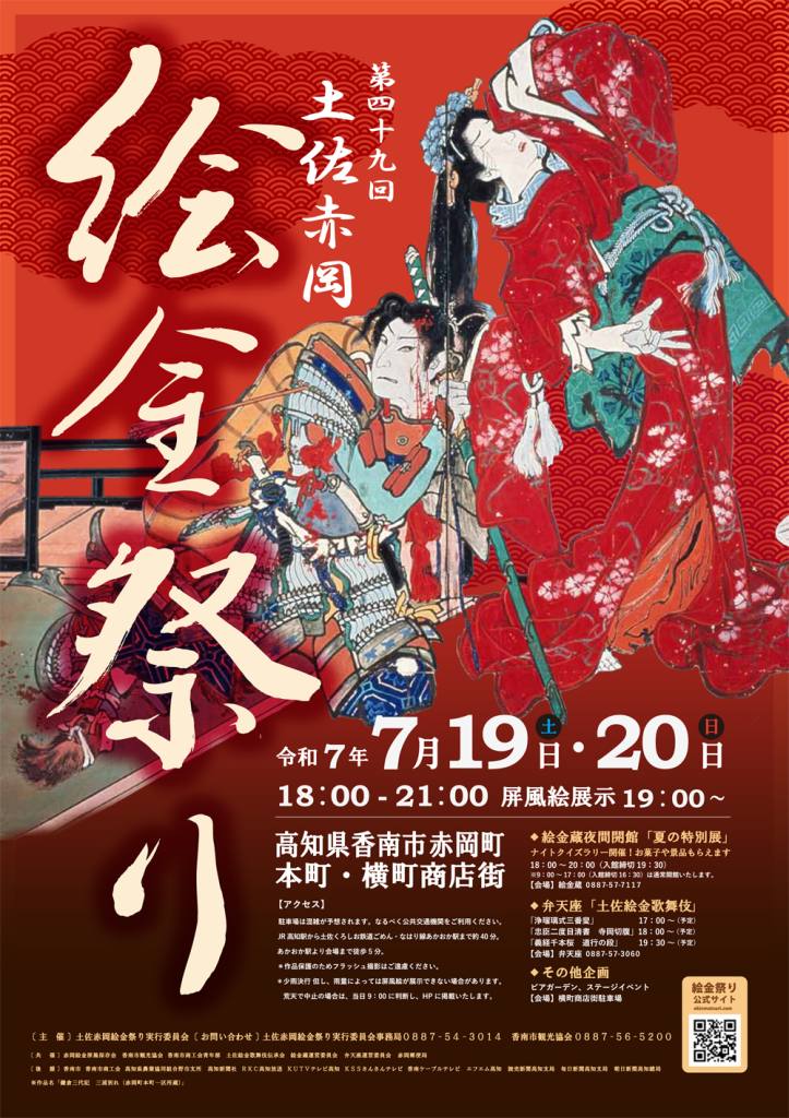 第49回土佐赤岡絵金祭り開催 2025.07.14 今年は、7月19日、20日に開催です。■絵金祭り公式ページへ■高木酒造も参加を致します。【振る舞い酒】絵金蔵前にて、2日間。午後5時前開始【酒蔵開放】酒蔵にて、午後1時から午後9時まで。 お勧めのお酒を試飲・販売、酒蔵内も見学可。