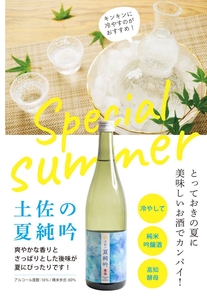 土佐の夏純吟発売開始 2026.04.28 夏限定酒、「純米吟醸 土佐の夏純吟」はどろめ祭りの日から販売開始です。どろめ祭りは中止になりましたが、土佐の夏純吟は販売を開始いたします。冷やして美味しい、夏の限定酒を飲んで、土佐の夏を体感ください。■土佐の夏純吟